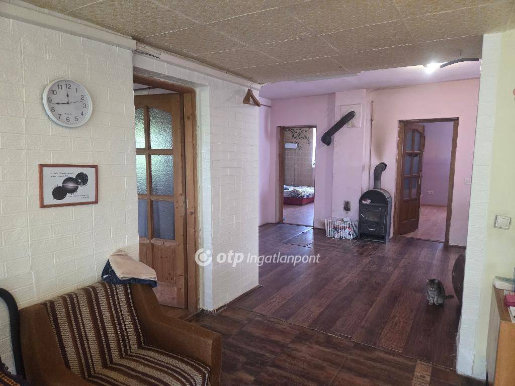 A földszinten található egy nagy üveges ,és világos nappali ,amerikai konyhás étkező,3 különnyíló nagy szoba ,kis kamra,fürdőszoba wc-vel. Az otthon melegét jelenleg kandalló és hűtő-fűtő klíma biztosítja.2025 januárjában a tető szigetelése megtörtént.