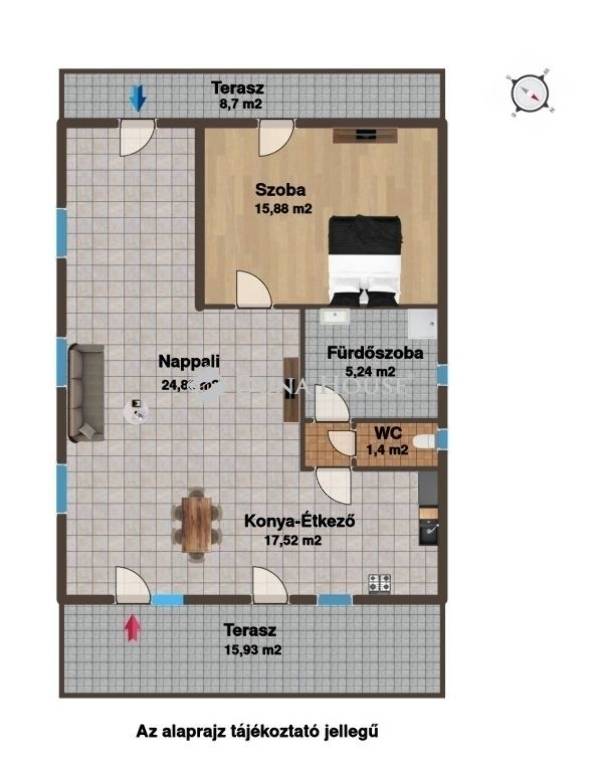Kulcsrakész állapot mely magában foglalja a vevő igénye szerinti burkolást is magas színvonalon 4000Ft/m2 -es árig bezárólag. Az állapot ára 63M Ft.