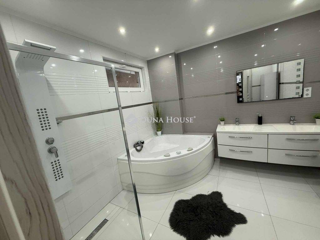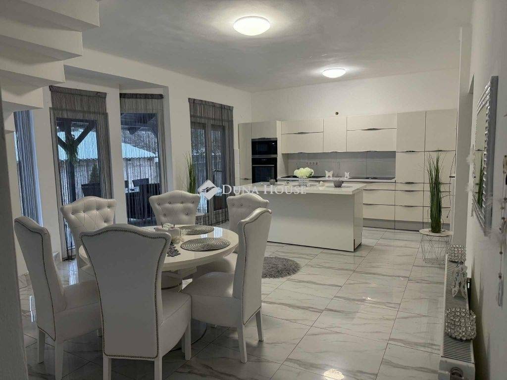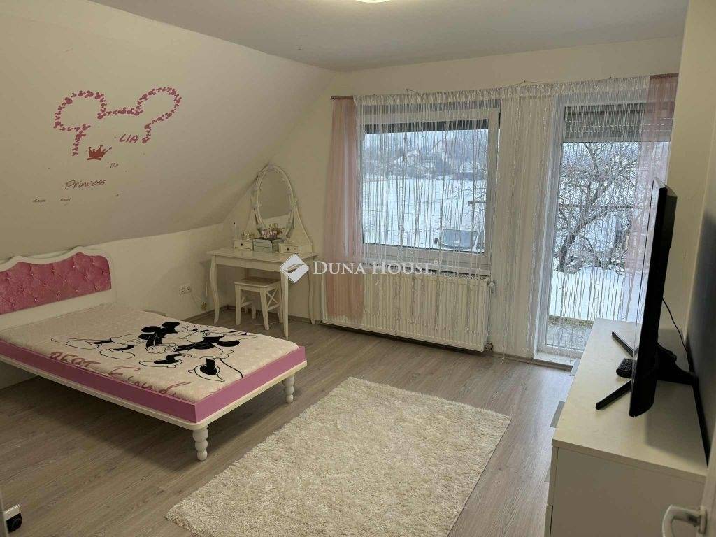 Alsó szinten tágas nappali + konyha, szoba, fürdő, wc, gardrób található.