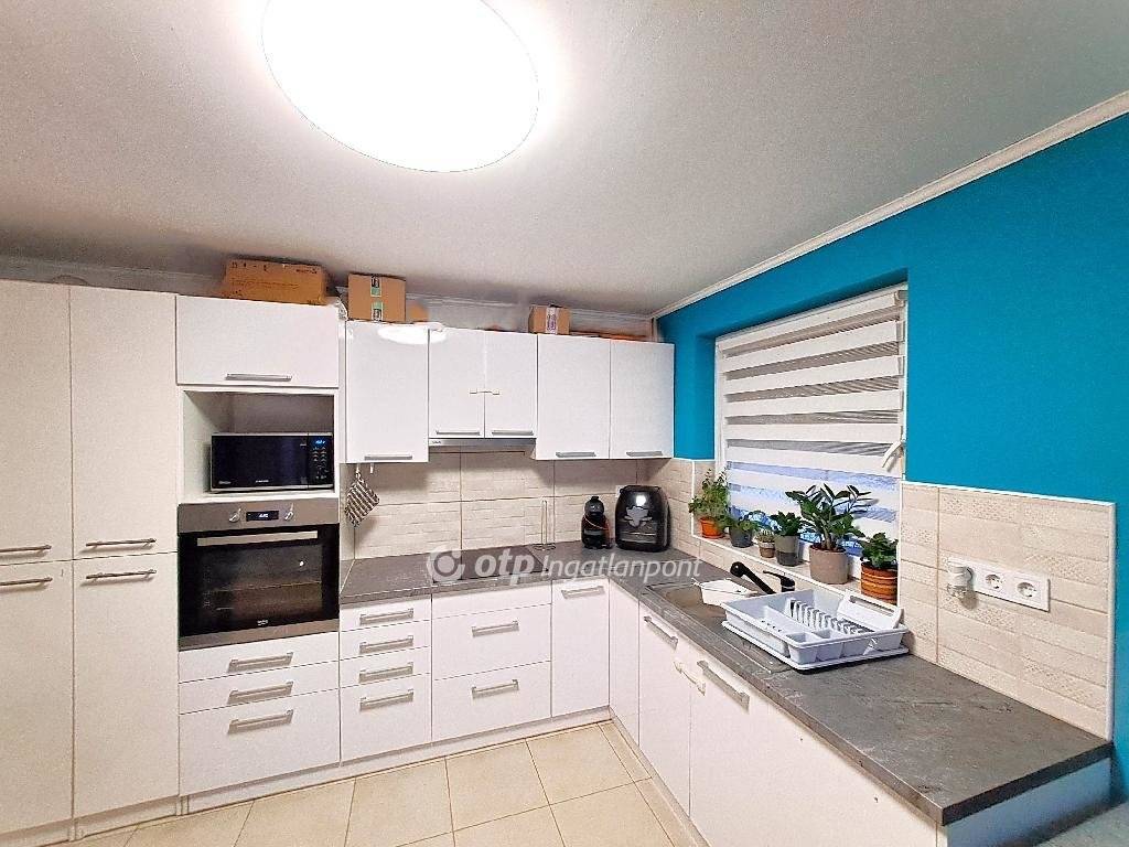 Pest vármegye, Törtelen 68 m2 hasznos nettó alapterületű családi ház 35 m2 melléképülettel 573 m2 nagyságú telken eladó. Az 1984-ben épített ingatlan beton alapon tégla falazattal (Ytong, szilikát blokk és tégla) készült. A födém öntött monolit beton 20 cm-es Rockwool kőzetgyapot hőszigeteléssel ellátott, gipszkarton álmennyezettel borított. A tetőszerkezet fából készült, jó állapotú, beázástól mentes. A padlás járható, külső- és belső feljárás biztosított, a tető egy része igény szerint beépíthető. Héjazata égetett cserepezést kapott, körben csatornával ellátott. A külső nyílászárók hőszigetelt műanyagok, a belső ajtók cserélt normál szerkezetűek, a bejárati ajtók műanyagra cseréltek. A homlokzat jó állapotú vakolt, hőszigetelésre, kőporozásra vár. Az összkomfortos egyszintes házban három szoba, egy konyha-étkező, egy fürdőszoba, egy WC-helyiség, egy mosókonyha, egy előszoba, egy közlekedő és egy terasz kapott helyet. A lakás helyiségei parketta-, padlószőnyeg- és járólap burkolatot kaptak. Az összközműves ingatlanban a cserélt belső hálózatú Fi-relével és kismegszakítóval körökre rendezett egyfázisú villany (32 Amper), a H-tarifás vétel, a vezetékes víz, locsolásra fúrt kút, a csatorna, a gáz telken belül, valamint az optikai kábel leköthetősége rendelkezésre állnak. Az otthon melegéről és melegvíz ellátásáról BIASI kondenzációs kombi gázkazán gondoskodik radiátoros hőleadással. Alternatív megoldásként 3,5 KWh teljesítményű hűtő-fűtő klíma is beszerelésre került, valamint egy vegyestüzelésű kémény is adott. Az udvar rendezett, három oldalról körben bekerített. Gépjárművek számára az aszfaltos útról kapubejáró biztosított. A telken egy 35 m2 nagyságú melléképület is található, melyben igény szerint egy dupla garázs és egy kisebb műhely vagy tároló kialakítható. A családi ház saroktelken helyezkedik el, szabadon álló építésű. A központ infrastruktúrája pár száz méteren belül elérhető, a tömegközlekedés kiépített.