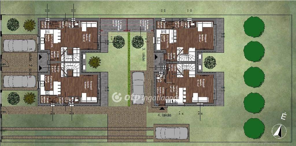 Kőröshegyen a völgyhíd lábánál eladásra kínálunk egy 66 m2 alapterületű, modern, újépítésű társasházi lakást, a Balatontól 5 km-re. A földszinten tágas, világos amerikai konyhás étkező és nappali kerül kialakításra, továbbá egy mosdó és egy tároló helyiség is helyet kap. A tetőtérben két hálószoba és egy kádas fürdőszoba található. Az épület 30-as Porotherm téglából, vasbeton födémmel és alaplemezzel készül, 10 cm homlokzati, valamint 40 cm tetőszigeteléssel, így kiemelkedően energiahatékony otthont kínál, 3 rétegű, modern színezett nyílászárókkal. A fűtést hőszivattyús padlófűtés biztosítja, a nyári forróságban pedig klímaberendezés ad enyhülést. A lakások csak a lépcsőházi falnál és az előszoba egyik falánál kapcsolódnak egymáshoz, így a zajszigetelés és a privát tér maximálisan biztosított. A lakáshoz saját első- és hátsókert, valamint autóbeálló tartozik, melyek összmérete 109m2. Az alaprajzon 3. számú lakás. Budapest egy óra autózással elérhető. A csendes szórakozás lehetősége is adott, ugyanis 400 m-re van az ingatlantól egy horgásztó. Ajánljuk az ingatlant mindazoknak akik a Balatonhoz közel szeretnének lakni, egész évben nyaralni, vagy egy jó befektést keresnek. Az ingatlan alkalmas az Otthon Start Programra.