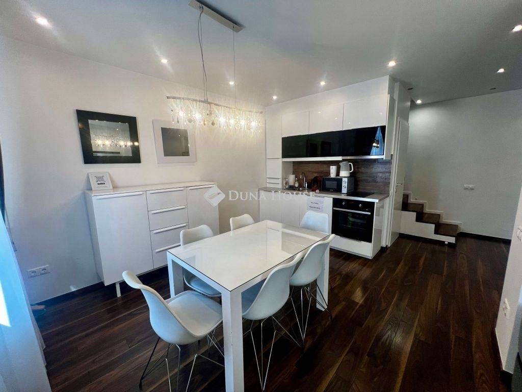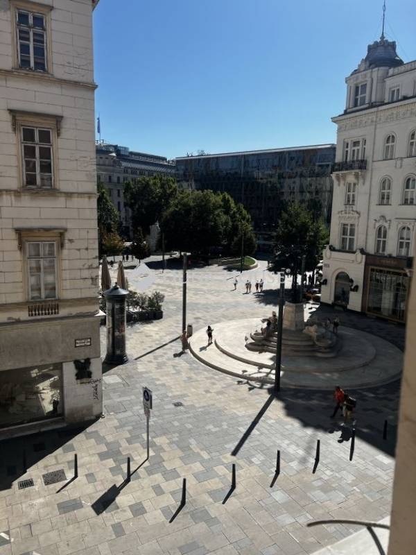 For rent: a unique, two-level, 100 m² luxury apartment located on Harmincad Street, just steps away from the iconic Vörösmarty Square in the heart of Budapest. From the windows, youll enjoy a breathtaking panoramic view especially magical during winter, when the world-famous Christmas Market fills the square below.