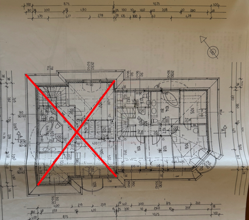 Jelenleg az emeleten két szoba összenyírásra került, ami igény szerint kis átalakítással két külön szobává alakítható vissza, ahogyan az alaprajzon is látható.