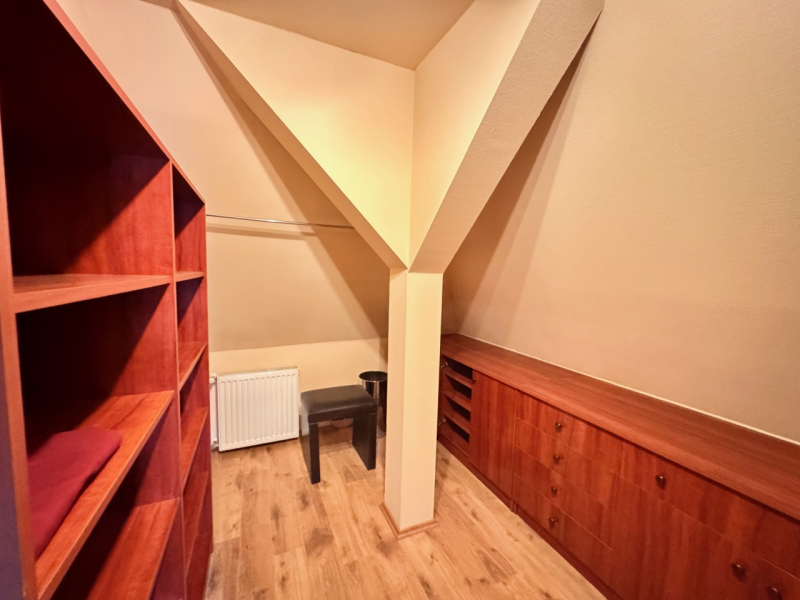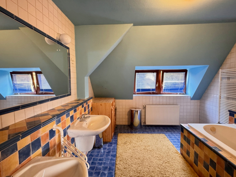 -Emelet: lépcsőház(11,16m2), közlekedő(2,64m2), WC+kézmosó(4,16m2), 2 szoba(20,48m2, 12,41m2), gardróbszoba(5,6m2), fürdőszoba+WC(10,2m2), erkély(2,5m2).
