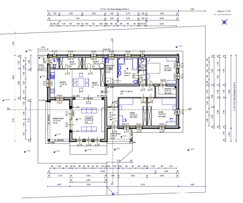 Az ingatlan 719m2-es összközműves intím telken épült magas minőségben magán célból! A ház hasznos alapterülete 143m2 + 3db terasszal ami összesen 23,50m2. A 30-as Ytongból+15cm-es grafitos homlokzati szigeteléssel épült otthon központja az egyedi tágas több mint 51m2-es egyedi hangulatú amerikai konyhás nappali. További helyiségek: 3 szoba, fürdőszoba, külön wc, tároló, háztartási helyiség, kazánház, közlekedő és előszoba helyiségekből áll, valamint egy teraszról megközelíthető külső Wc-vel. Az épület fűtése-melegvízellátása 30kw-os Ariston kombicirkóval biztosított padlófűtésen keresztül, valamint az egész éves kellemes komfortról 5db hűtő-fűtő klíma is gondoskodik. A padló 15cm-födém 20cm szigeteléssel lett kivitelezve. Az antracit leier felületkezelt betoncserép nemcsak kimagasló védelmet nyújt, hanem modern megjelenésével, tartós színvédelmével évtizedekig esztétikus megjelenést kölcsönöz.