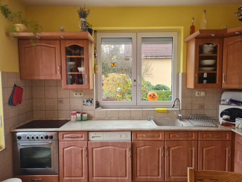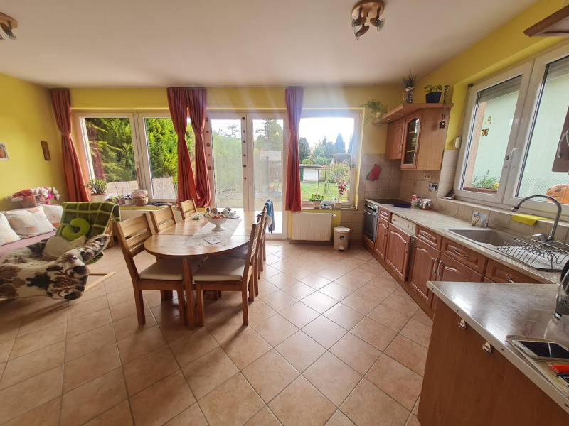 2004-es műanyag Hofstadter nyílászárók vannak az épületben, 12 m2-es száraz pince, kondenzációs kazán, padló és radiátoros fűtés, szép beltéri ajtók, beépített konyhabútor gépekkel, nagy beépített szekrény, 25 m2-es terasz.