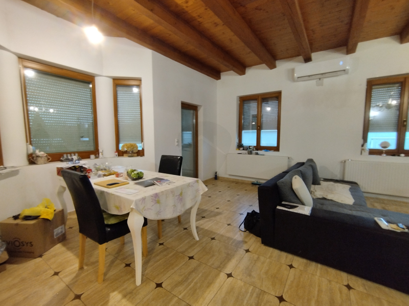 Az ingatlanban 2 db hálószoba található, illetve egy tágas nappali, amely kandallós, tökéletes helyszín lehet a közös családi estékhez. A fürdőszoba közel 12 m2, ezért helyet kapott egy sarokkád, egy zuhanyzó és minden egyéb háztartási gép is elfér kényelmesen. A hátsó terasz pedig a nyári estéken garantálja a kellemes, szabadtéri programokat, ahol barátokkal és családdal élvezheted a szép időt. A fűtés pellet kazánnal megoldott, így mindig meleg és otthonos lesz az ingatlan. A nappaliban egy 5 kw-os HŰTŐ-FŰTŐ KLÍMA is biztosítja a kellemes érzetet. A gázcsonk a telken belül található, igény szerint gázkazán is kialakítható. Az ablakok minőségi fából készültek 3 RÉTEGŰ üvegezéssel!