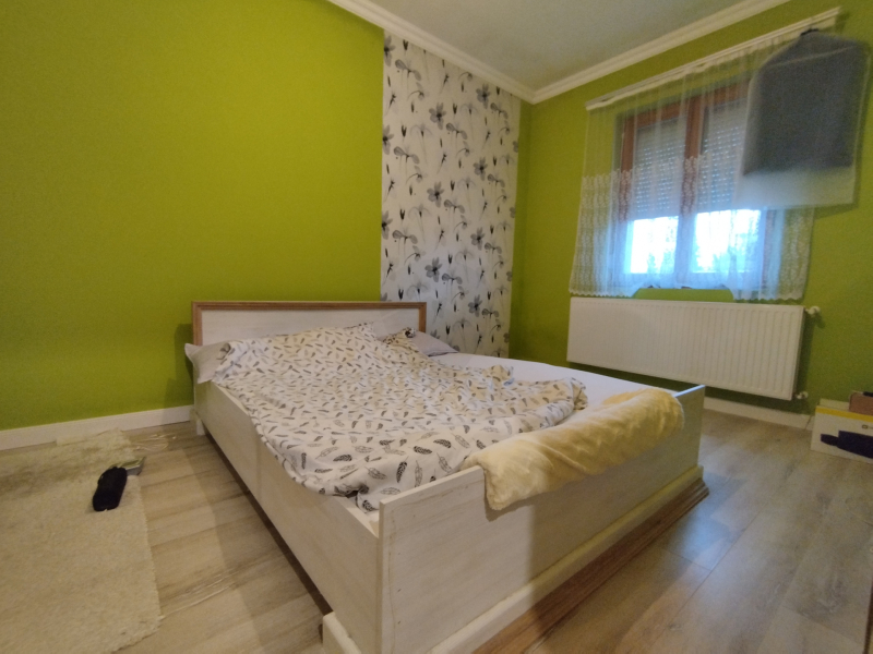 Az ingatlanban 2 db hálószoba található, illetve egy tágas nappali, amely kandallós, tökéletes helyszín lehet a közös családi estékhez. A fürdőszoba közel 12 m2, ezért helyet kapott egy sarokkád, egy zuhanyzó és minden egyéb háztartási gép is elfér kényelmesen. A hátsó terasz pedig a nyári estéken garantálja a kellemes, szabadtéri programokat, ahol barátokkal és családdal élvezheted a szép időt. A fűtés pellet kazánnal megoldott, így mindig meleg és otthonos lesz az ingatlan. A nappaliban egy 5 kw-os HŰTŐ-FŰTŐ KLÍMA is biztosítja a kellemes érzetet. A gázcsonk a telken belül található, igény szerint gázkazán is kialakítható. Az ablakok minőségi fából készültek 3 RÉTEGŰ üvegezéssel!