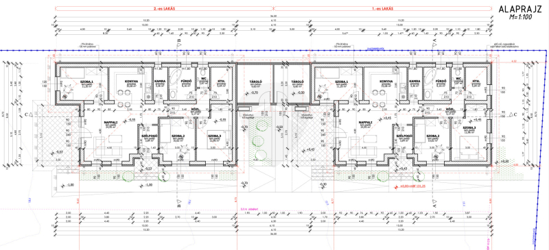 Az első és hátsó ingatlanok nettó alapterülete 95,25 m².