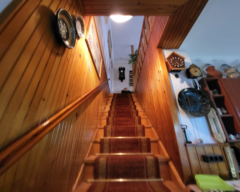 Földszinten előszoba, hatalmas konyha, újszerű, szép és kényelmes bútorokkal, gépekkel, dolgozó szoba, vendégszoba és fürdőszoba lett kialakítva. Az emeleten pedig helyet kapott egy nappali, két hálószoba és plusz egy fürdőszoba. A ház pincével és padlással is rendelkezik.