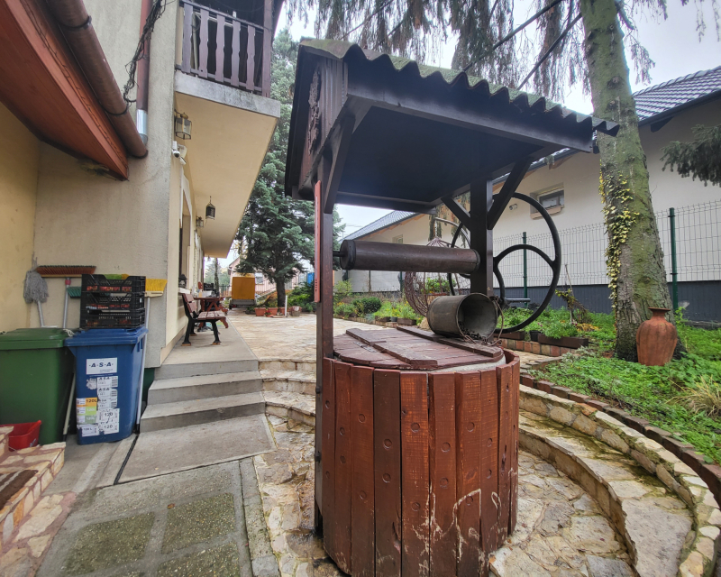 Telek mérete 1399 m2, amely rendkívül rendezett, helyet kapott benne egy gyümölcsös, egy üvegház, 1 db gyűrűs kút, 1 db fúrt kút, 1 db 4700 literes esővíz gyűjtő. A tökéletes kerti pihenést, kikapcsolódást biztosító részeken, kiépített locsoló rendszer dolgozik a tulajdonosok helyett. Kinti épületek (amelyek térképészeten is megtalálhatóak) nyári konyha, hobbi szerszámos kamra, sufni. Hiba lenne figyelmen kívül hagyni a pinceszint alatt kialakított, tágas borospincét.