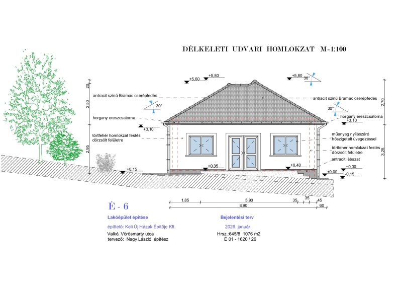 -Homlokzat: 15 cm EPS hőszigetelés