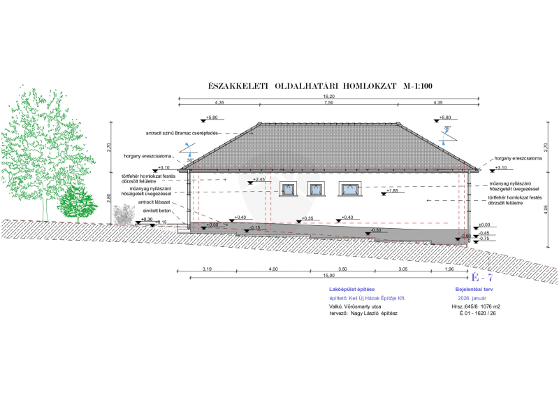 -Tetőfedés: antracit színű betoncserép