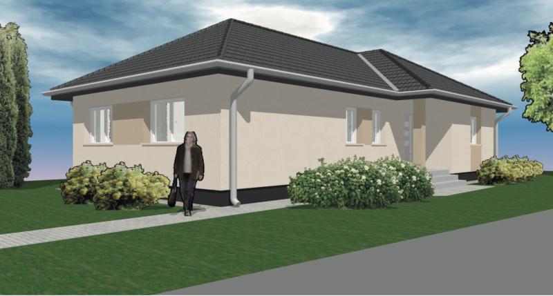 A megvalósuló családi ház 93 nm lakóterületű, mely amerikai konyhás nappali, 3 szoba, WC, fürdőszoba, háztartási helyiségből áll.