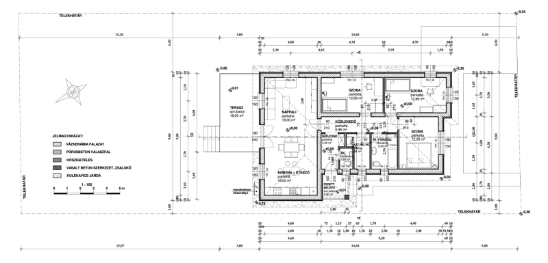 - falazat: 30 cm nútféderes tégla + 15 cm EPS homlokzati hőszigetelés