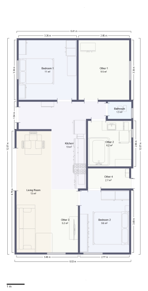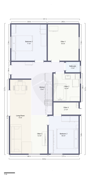 Szobák: 3 szoba + amerikai konyhás nappali