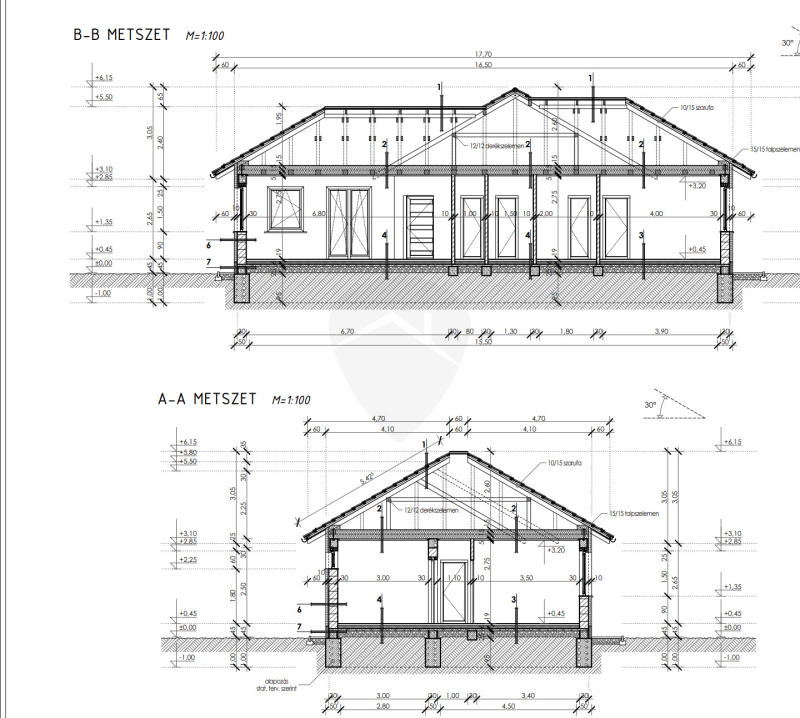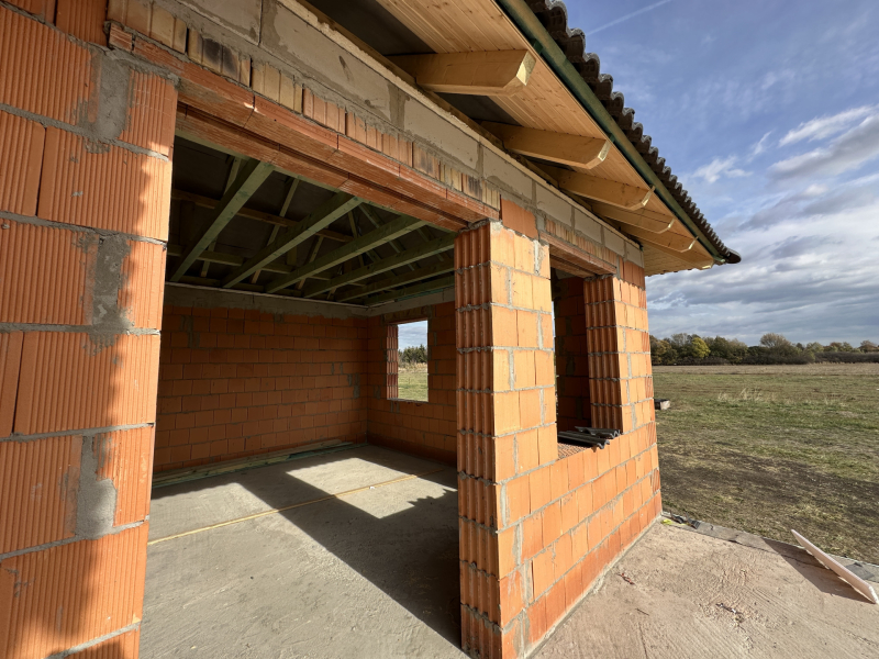 ✔ Falazat: Porotherm P30N+F tégla, betonkoszorúval és fa födémszerkezettel