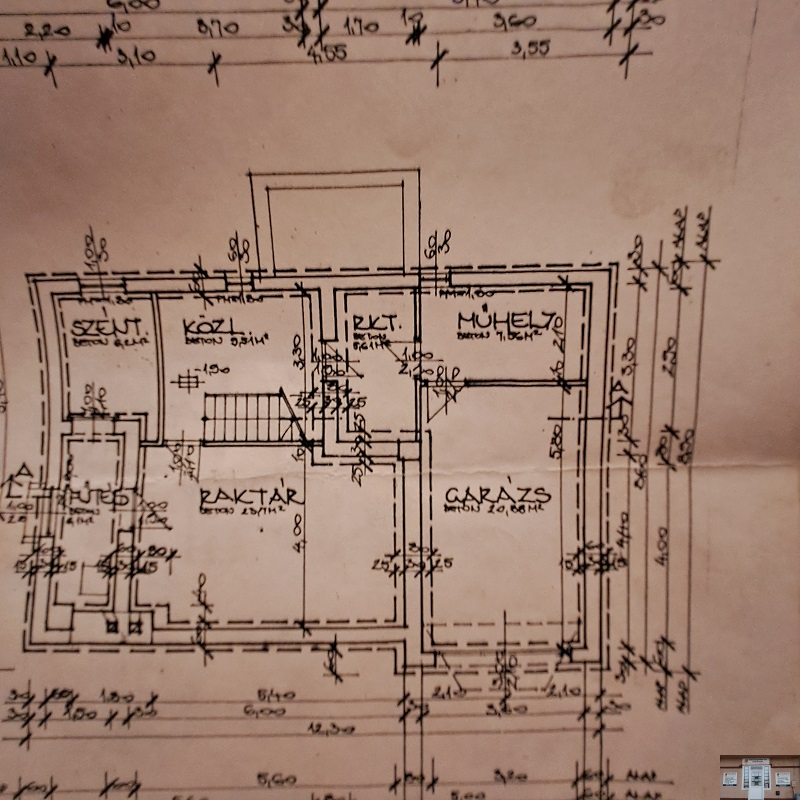 Az egész ház alatt, 85 m2-es pince van, mely több részre le van választva, itt található garázs, kazánház és tárolók.