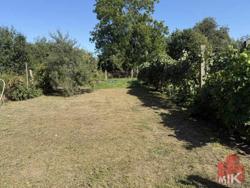 Az ingatlanhoz sík, 950 m2 nagyságú, részben szőlővel beültetett telek tartozik.