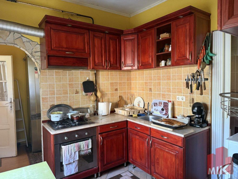 A lakóházban 3 szoba, konyha, étkező, előszoba, spajz, fürdőszoba, wc található. A szobák burkolata parketta, étkezőben, előszobában szalagparketta, a többi helyiségben mettlachi burkolat került lerakásra.