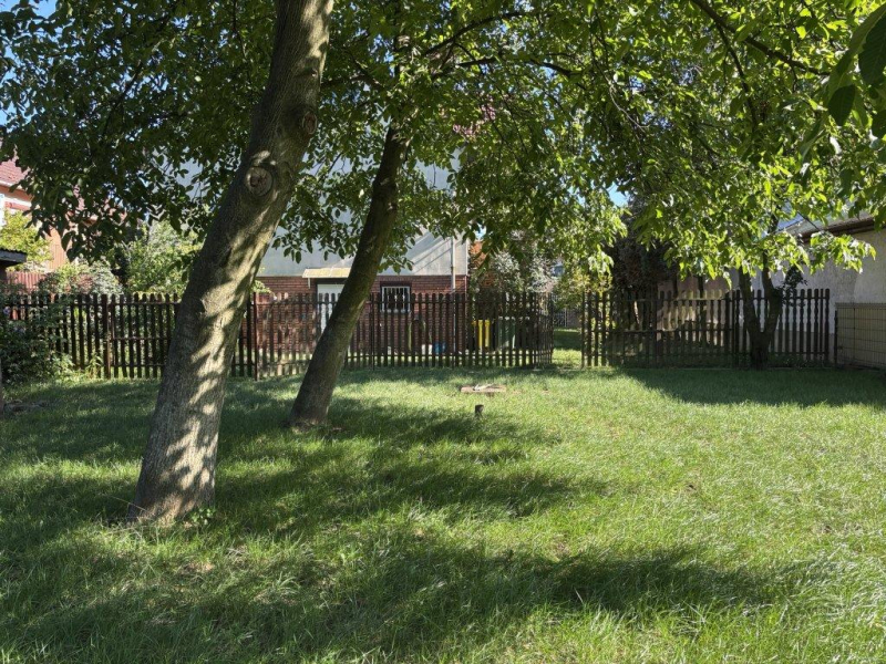 - kertje füvesített, néhány gyümölcsfával beültetett, tárolóval kialakított