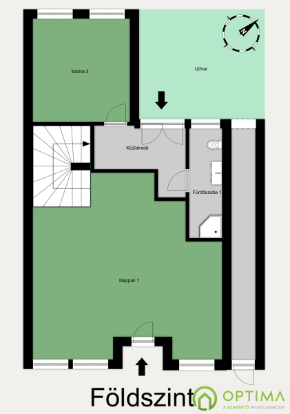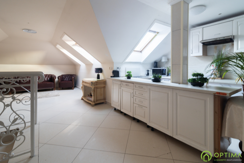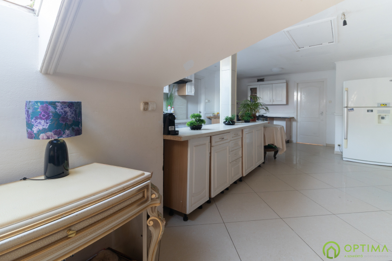 Jelenleg az ingatlan egy gipszkarton fallal két külön bejáratú lakássá lett alakítva – ez a megoldás könnyedén visszaalakítható az eredeti állapotába. Az alsó szint nagyobb szobájából közvetlen kijárat nyílik a hátsó udvar hangulatos teraszára.