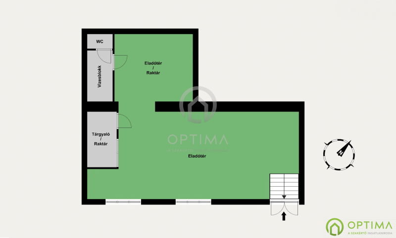 A jelenlegi elrendezés alkalmas ügyfélforgalommal járó tevékenységre, de raktározással, háttérfunkciókkal kiegészítve akár kombinált szolgáltató és kereskedelmi egységként is működhet.