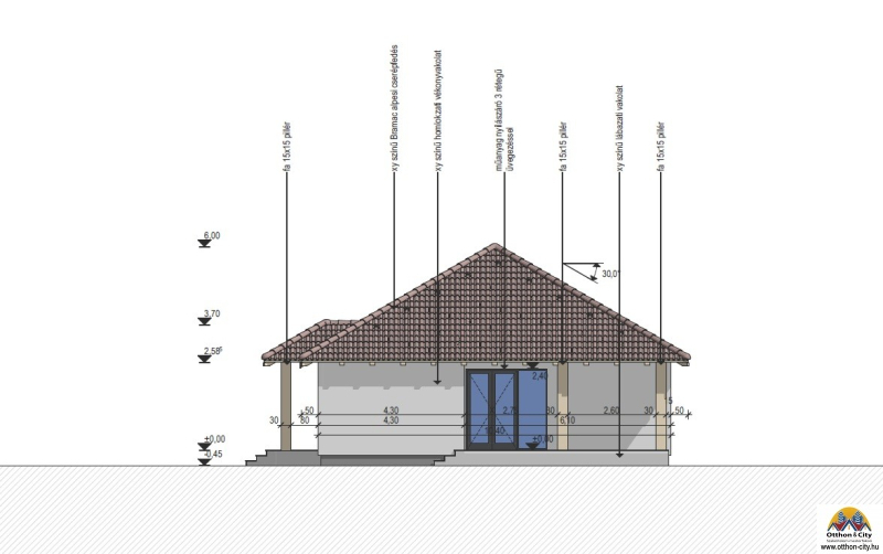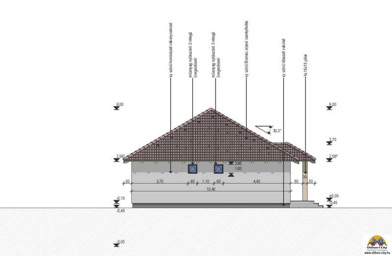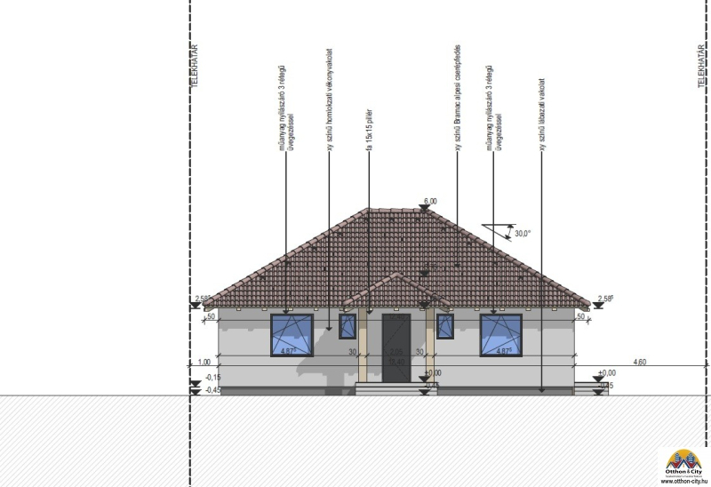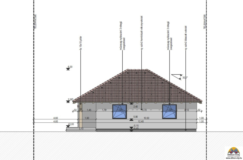 Főfalak: 30 cm Porotherm tégla