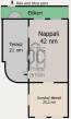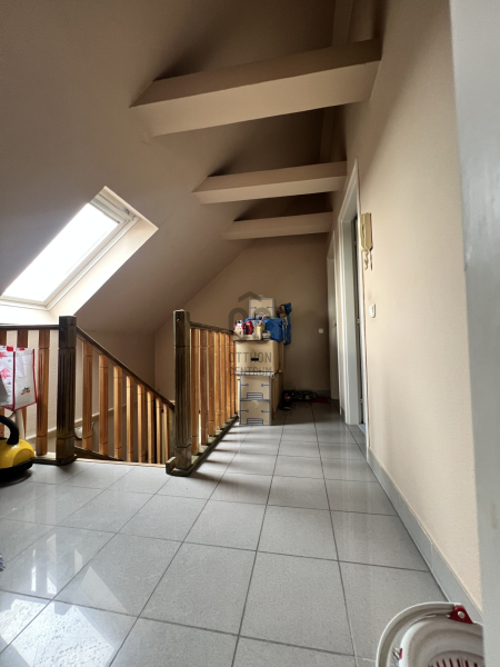 A másik lakás kétszintes, az utca szint felől közelíthető meg és a 21nm-es teraszról nyílik a bejárata. Bruttó 128nm (1,9m-nél mért területtel) lakótér, tágas nappalival, nagy méretű konyha – étkezővel, két nagy hálóval, tágas fürdővel rendelkezik.