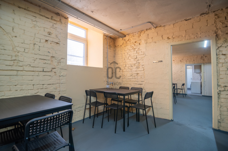 Tágas helyiség téglaházban, teljesen készen áll a lakhatásra, kereskedelmi célokra is használható. Tökéletes iroda, hostel, műhely vagy kombinált „iroda + lakás” megoldás számára.