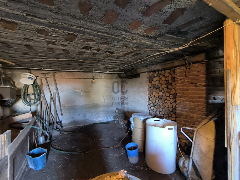 A ház részben alápincézett (a két első szoba kivételével), tüzifa illetve termény tárolására is alkalmas, de itt található a központi fűtésért felelős vegyestüzelésű kazán - gázvezeték az utcán található, nincs bevezetve -, valamint a melegvíz ellátásért felelős villanybojler is.