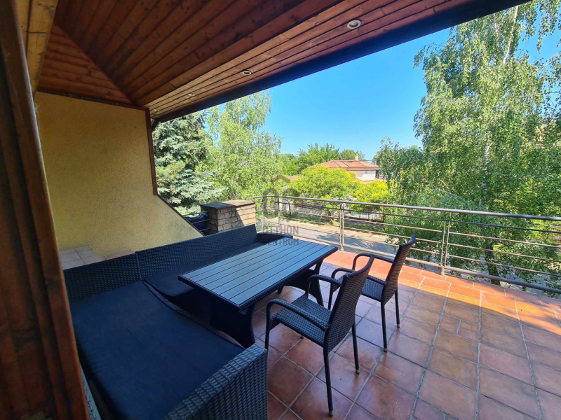 Emeleten: nappali, 4 hálószoba, 3 fürdőszoba, 3 erkély.