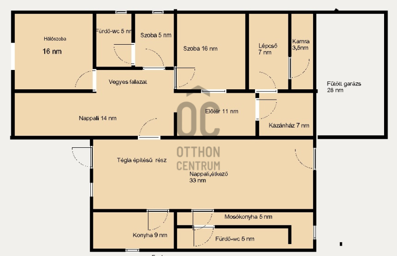 Az épülethez 28m2-es fűthető garázs csatlakozik.
