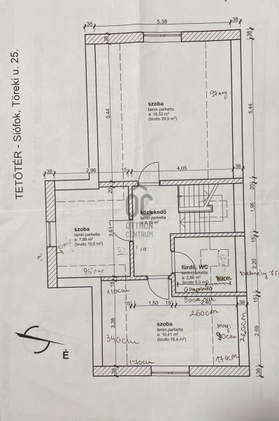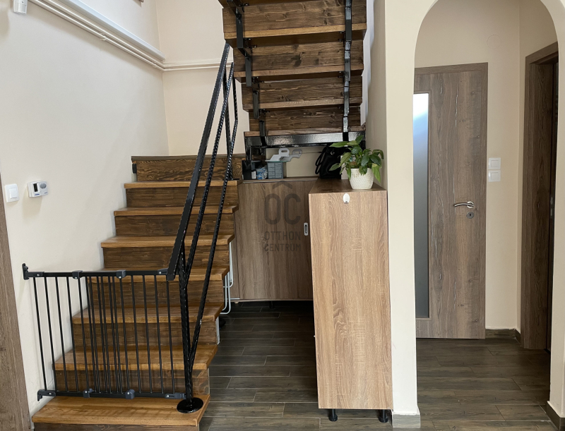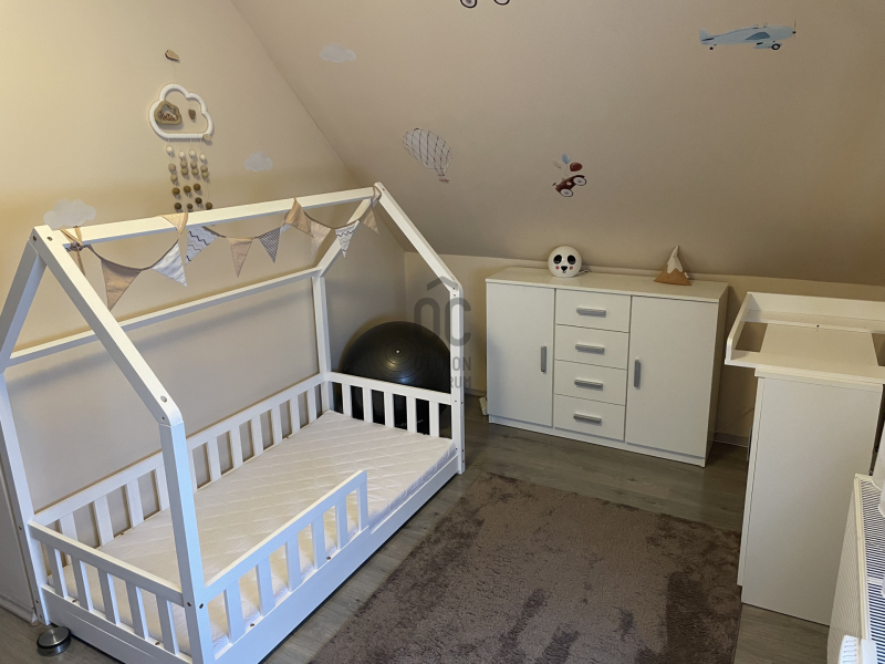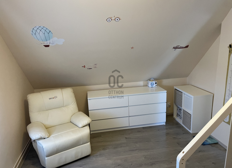 Emelet: 3 hálószoba, fürdőszoba mellékhelyiséggel.