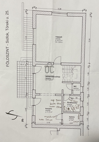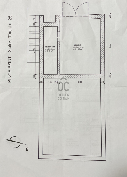 Földszint: Tágas étkező konyha, nappali, fürdőszoba, WC, terasz.