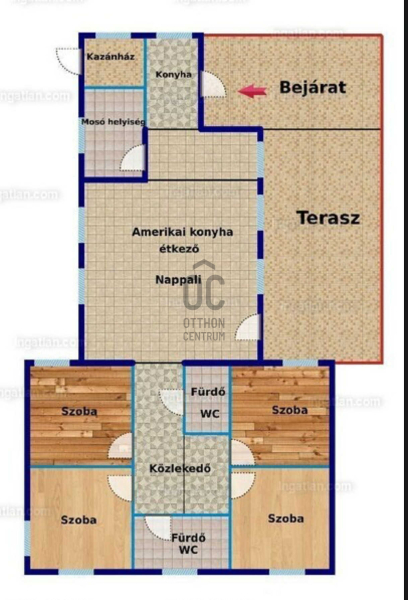 A konyha mellett külön főzőfülke, mosóhelyiség és kazánház teszi teljessé a mindennapi élethez szükséges funkciókat.