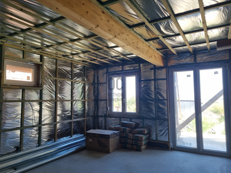 - 10 cm vastag aljzat szigetelés, + 15cm főfalszigetelés+ 15cm homlokzati szigetelés