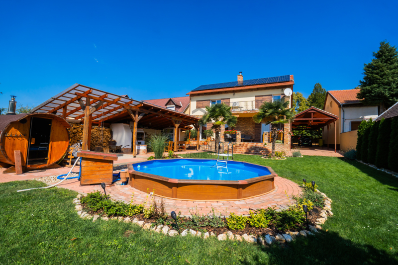 Balaton közelében, #családias,# mediterrán kert,# medence,# grill terasz,# szauna,# napelem, #családi ház#