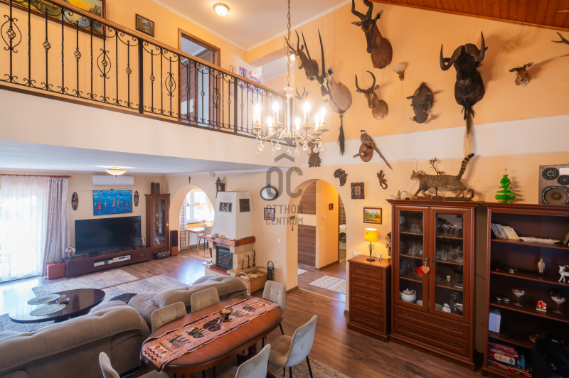 Hatalmas, galériás nappali: 50 m², konyhával és étkezővel együtt kb. 80 m²