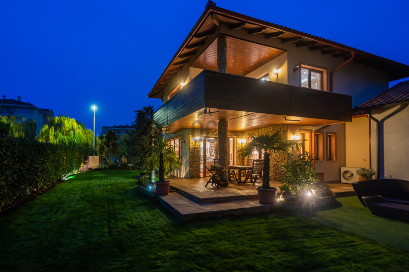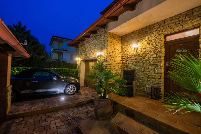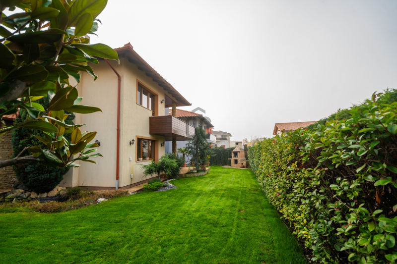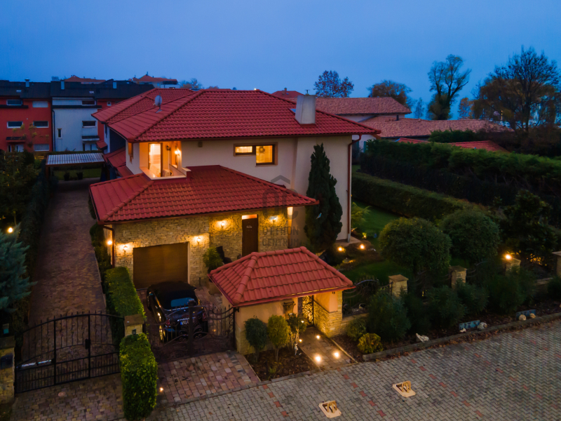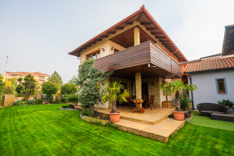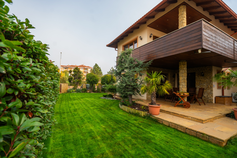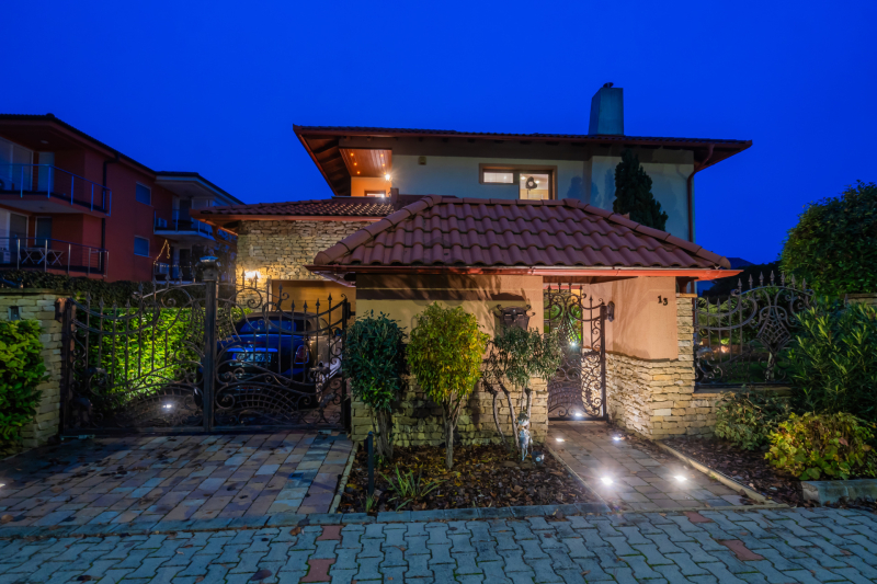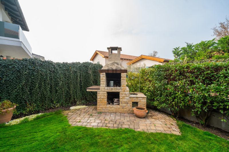 Az épület homlokzatát ürömi kő borítja, a kertet automata öntözőrendszer és alkonykapcsolós világítás teszi tökéletessé.