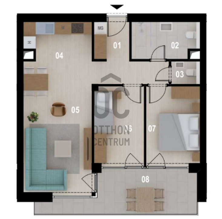 -2 háló+ amerikai konyhás nappali, fürdőszoba +WC, WC, előszoba, terasz