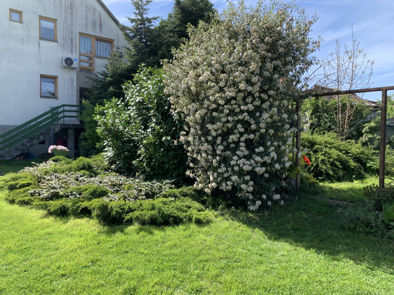 A kert ideális méretű, körül határolt, rendezett, szépen parkosított.