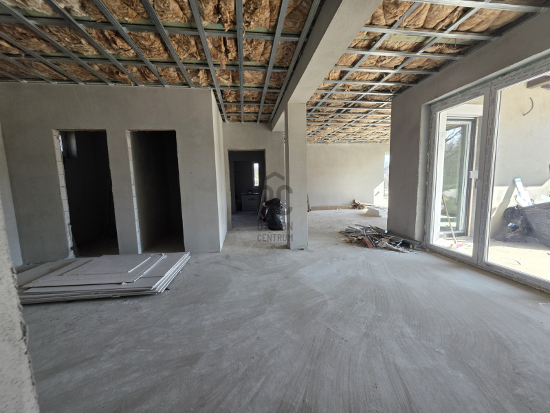 -Elosztása jól megtervezett, hatalmas 57 nm nappali-étkező-konyha a ház központja, tágas hálók (11,7nm, 14,59nm, 11,61nm), 2 db fedett terasz ( 17,32nm, 6,67nm )