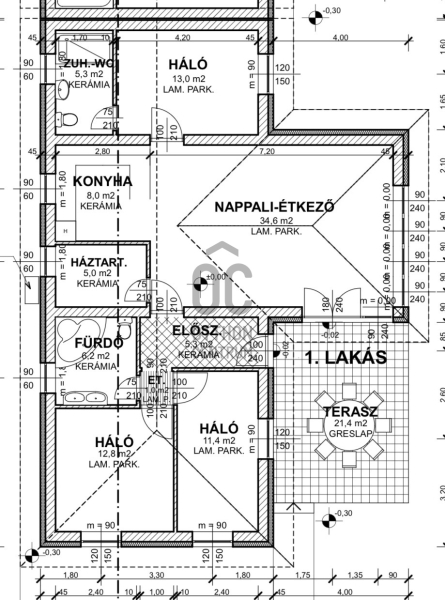 - 102 nm nappali + 3 szoba