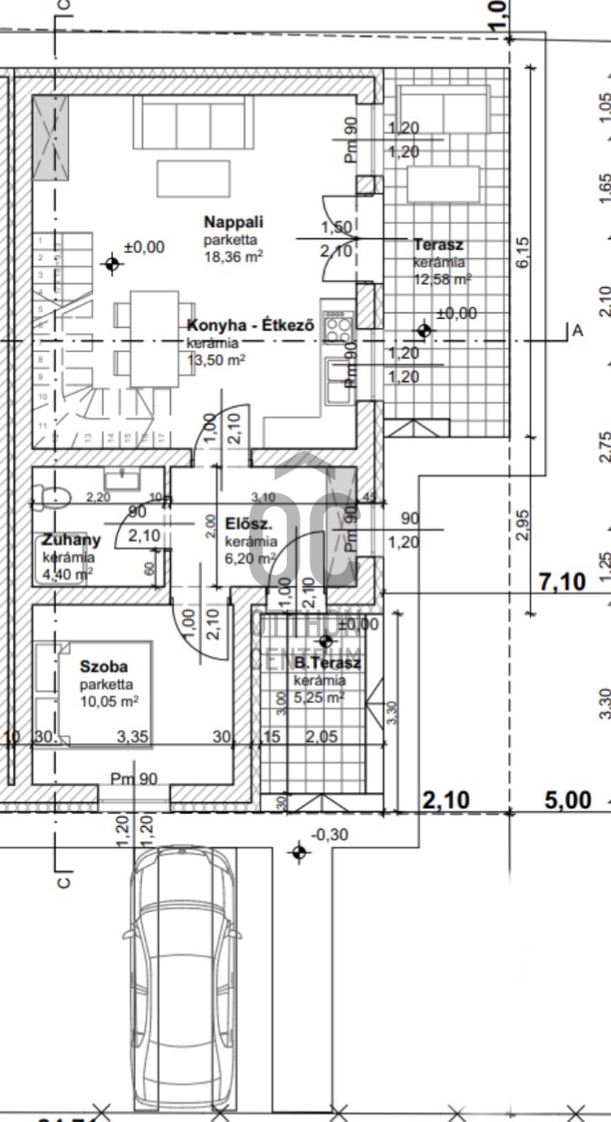 - 98 nm nappali + 3 szoba 2 szinten