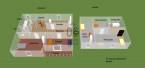 A lakótér két emeleten oszlik el, a földszinten egy teraszos nappali, lakószoba, konyha, fürdő, külön WC alkotja. Az emelten egy balatoni panorámás szobát, egy kisebb hálószobát és egy fürdőszobát találunk.