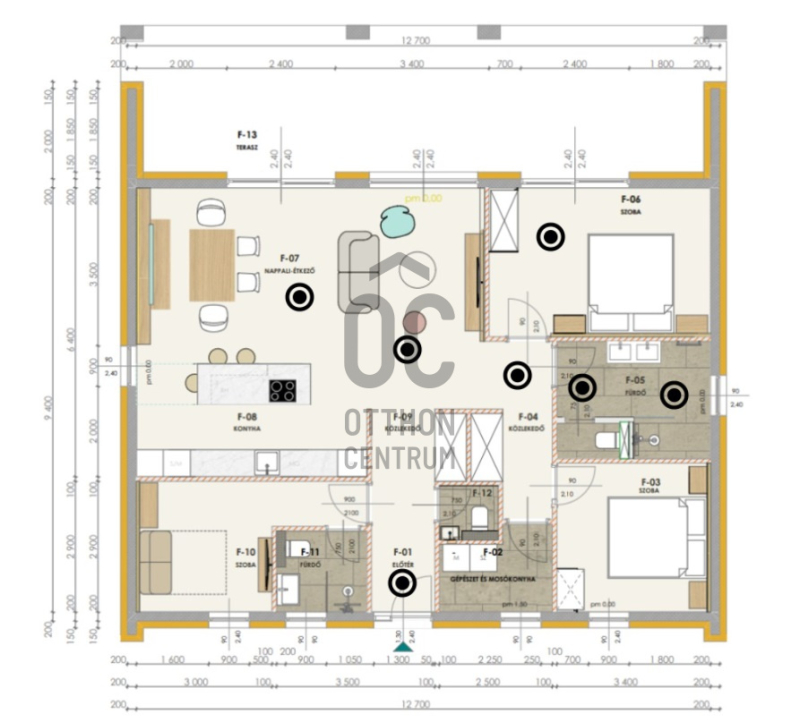 Tágas elrendezés: Nappali, 3 hálószoba, 2 fürdőszoba, gardrób, mosókonyha