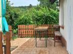 Mint már írtam is, kényelmes terasza van a háznak, nyugati fekvéssel, és egy légtérben a kis nappali,konyha, étkező, valamint egy fürdőszoba található benne, a felső szinten egy kényelmes háló lett kialakítva, ahova lépcsőn jutunk fel.