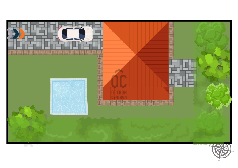 ✅ A kertben eredetileg medence volt, amelynek újranyitása nem építési engedélyköteles, így viszonylag egyszerűen visszaalakítható használható medencévé.