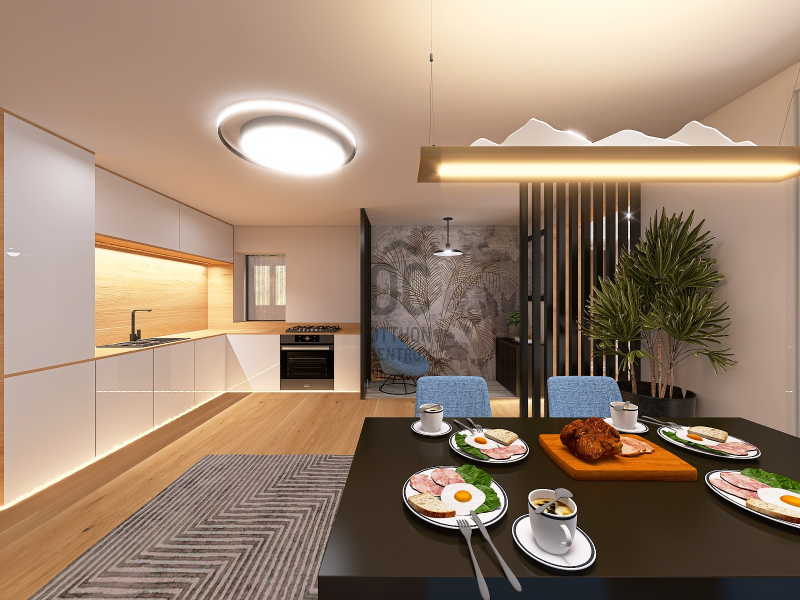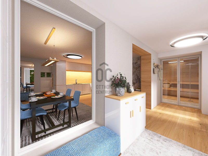✅ Felosztása: tágas nappali–étkező, háló- vagy dolgozószoba, gardrób, háztartási/gépészeti helyiség, konyha, zuhanyzós fürdőszoba, szauna, közlekedő, előtér.